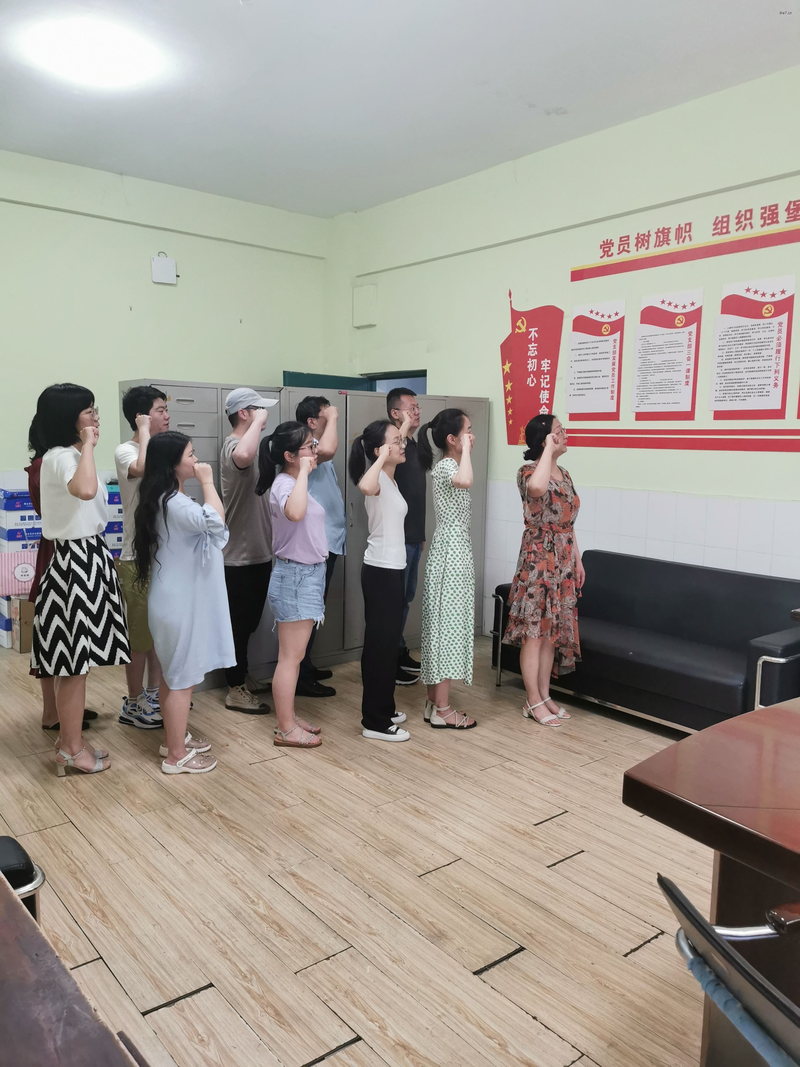 首先是支部书记讲党课,孙书记通过回顾中国共产党的发展历程,突出我党的先进性和纯洁性。我党坚持初心,永不褪色的大步向前,吸引了越来越多的人加入我党,使我党的队伍不断壮大。作为这样强大的队伍中的一员,我们更应该明确自己的使命和责任,在公司“省双高”和职教本科专业建设新征程上体现新担当展现新作为。随后,为增强使命感,支部书记带领全体党员同志一起进行了“红心向党”宣誓活动,重温入党誓词,回忆入党初心。
