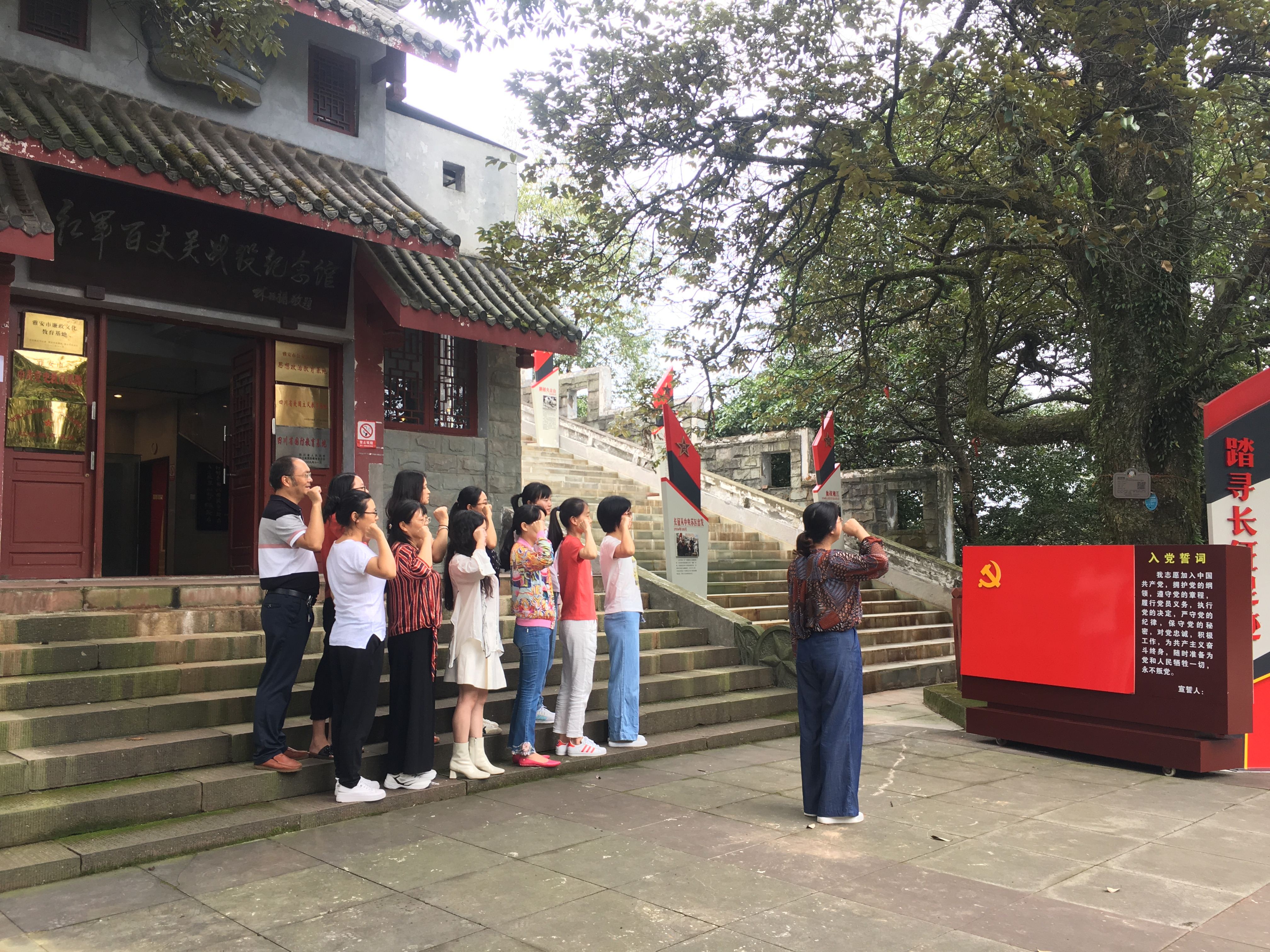 在教育活动中,老师们参观了蒙顶山茶史博物馆、红军碑林、百丈关大战纪念馆,教育导师利用场景进行现场教学,老师们感触颇多。接着导师采用移动课堂的方式引导大家重走了一段红军路,参观了红军战壕,让老师们身临其境地去感受那段峥嵘岁月。随后导师采用微党课的方式回忆了百丈关大战。最后大家在孙书记的带领下一起重温了入党誓词,用最真挚的情感致敬先烈,缅怀历史。