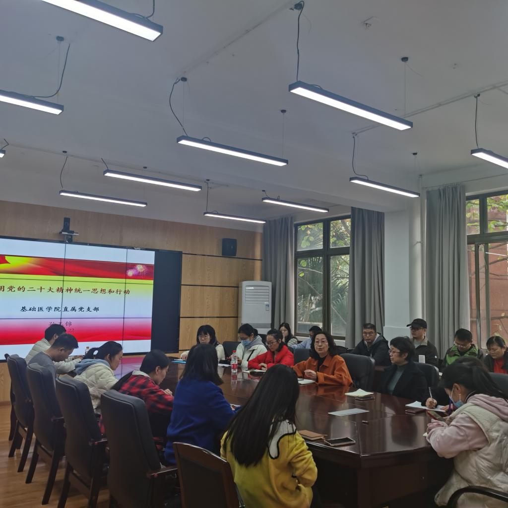 11月22日下午,SUNBET申博直属党支部在青年路B2-7室召开会议,开展“二十大精神进支部”微党课活动。直属党支部书记孙玉锦主持会议,全体教职工参加。