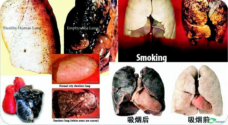 吸烟是慢性支气管炎、肺气肿和慢性气道阻塞的主要诱因 之一。实验研究发现,长期吸烟可使支气管粘膜的纤毛受损、变短,影响纤毛的清除功能。此外,粘膜下腺体增生、肥大,粘液分泌增多,成分也有改变,容易阻塞细支气管。