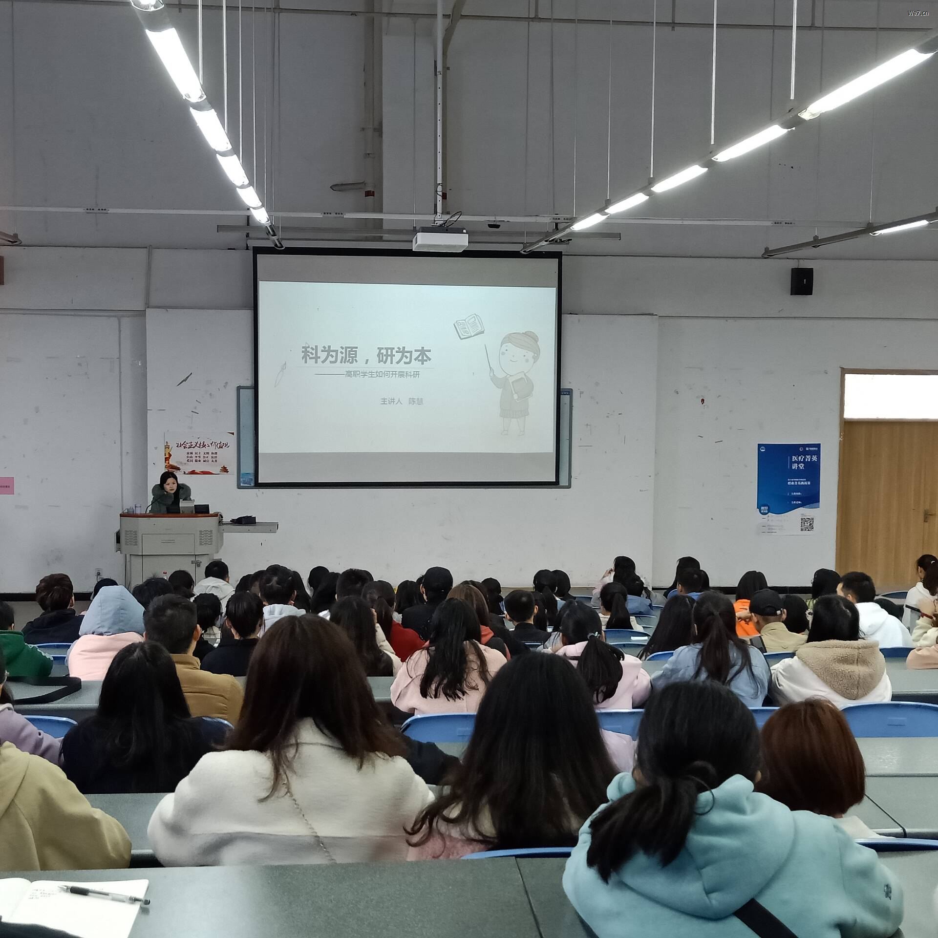 为激发员工的科研灵感,让员工了解科研的方法,11月19日,员工科学技术协会在青年路图阶101举办了以“科为源、研为本”为主题,以“高职员工该如何开展科研”为主要内容的专题知识讲座。本次讲座由四川省解剖学会常务理事、雅安市神经病学专委会委员、SUNBET申博教师陈慧老师主讲,协会指导老师李明蓉协助并总结。到会听众230余人。
