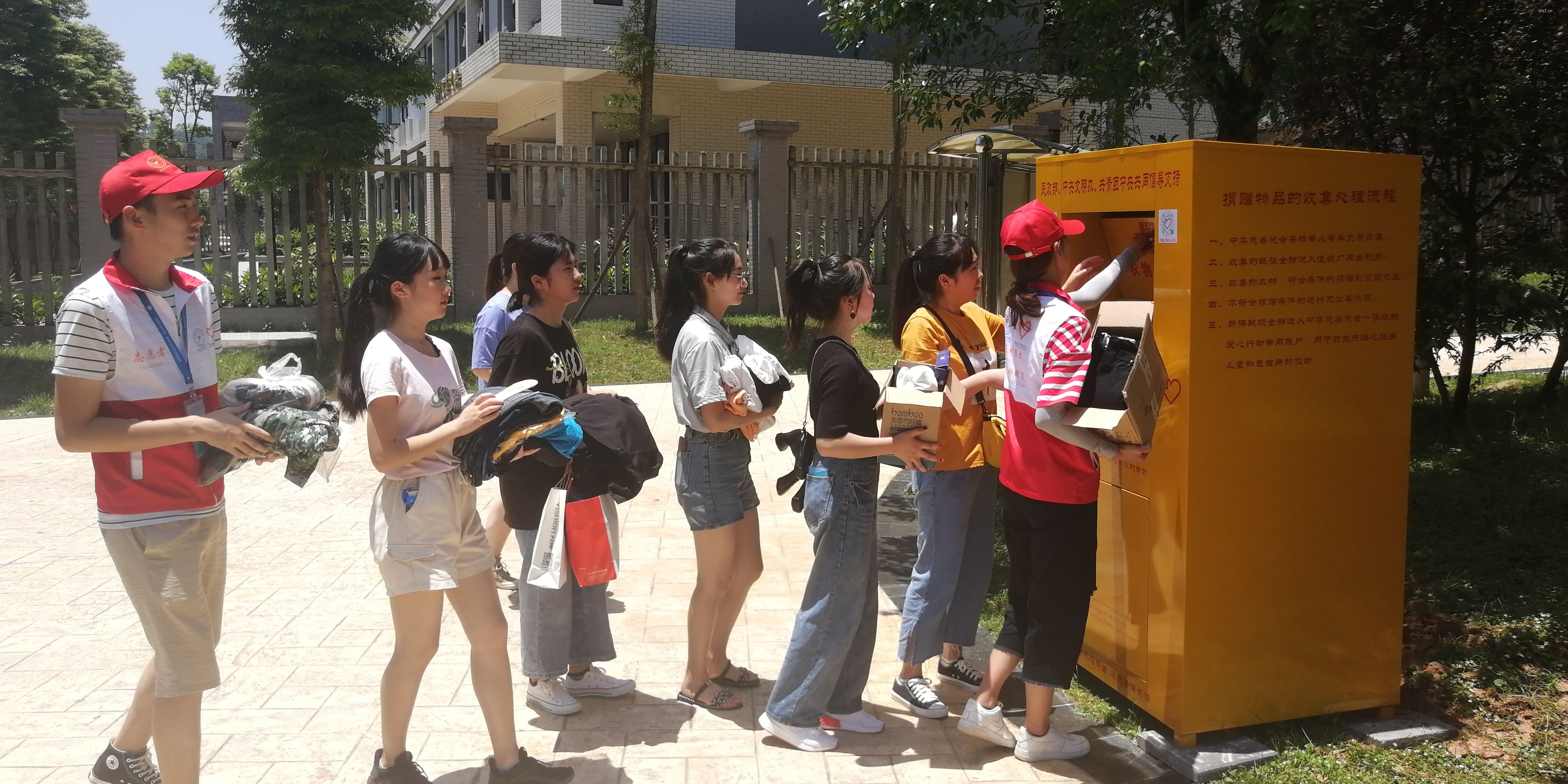 活动在志愿者精彩的歌舞表演中拉开帷幕,教师与员工主动了解活动内容,积极参与,将自己闲置的书籍和废旧衣物投放到“爱心屋”,并在签名板上承诺签名。活动过程中,志愿者宣读倡议书,向大家介绍“一张纸献爱心”活动的具体内容,积极引导师生加入其中。本次活动共建立三个“爱心屋”捐赠点,方便大家捐赠,为献出自己的一份爱心提供便捷。慈善总会工作人员定期将捐赠物品回收并资助到贫困患儿和困难群众中。