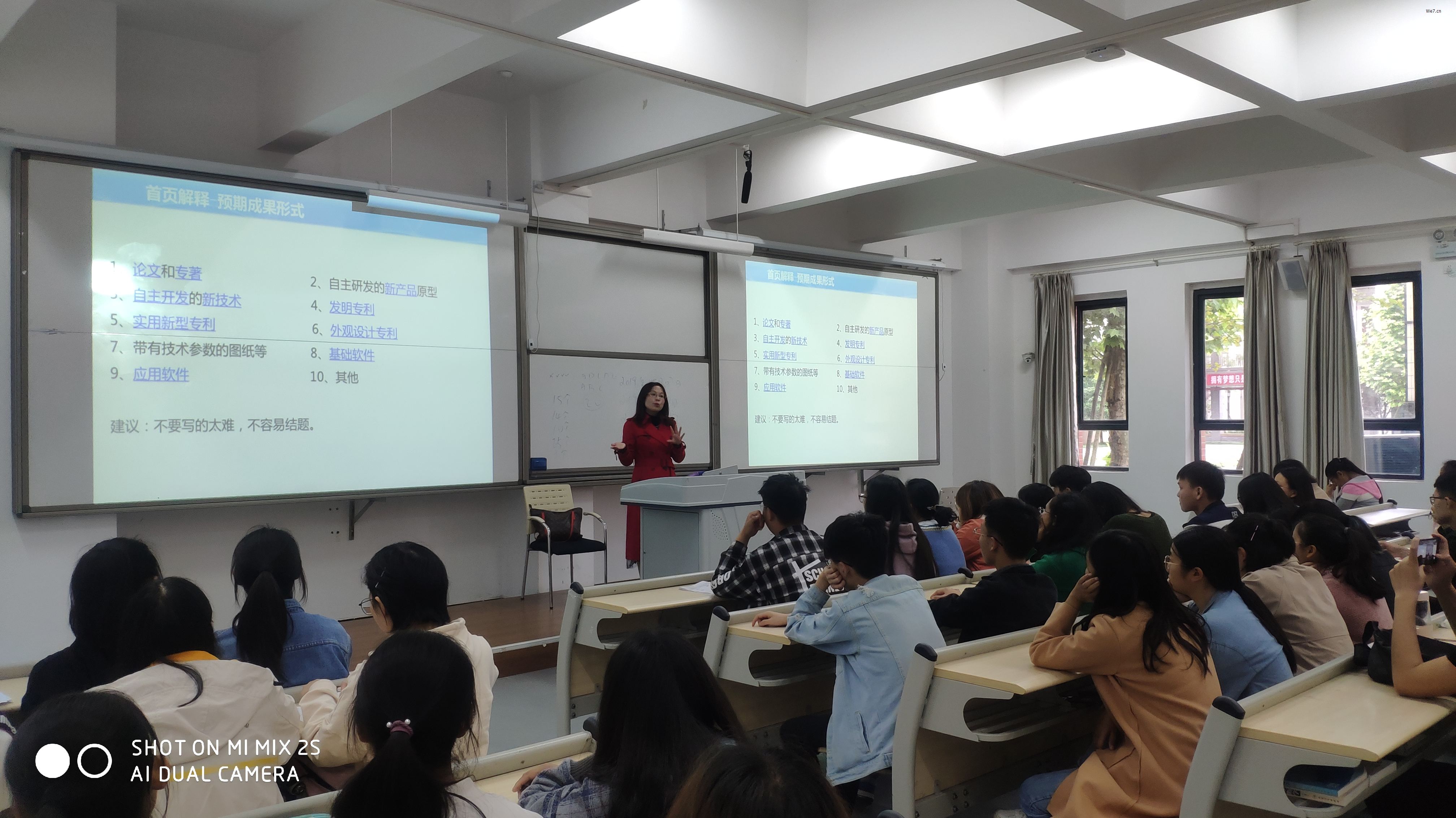 李明蓉老师主主要从以下几个方面进行了讲解:1.科研课题申报细则及申报书首页解读;2.课题论证的方法和经验;3.完成课题研究的条件、保障、撰写方法和经验;4.申报书撰写与论文撰写的不同;5.如何参考重要文献及列举参考文献的方法。    在本次讲座中,李老师用生动的讲解、亲切的互动,案例的分析,将枯燥的申报内容变得生动有趣,正如苏轼所言“横看成岭侧成峰,远近高低各不同”,通过灵活变通,画龙点睛,让同学们积极参与到讲座中,加强了讲座的效果。