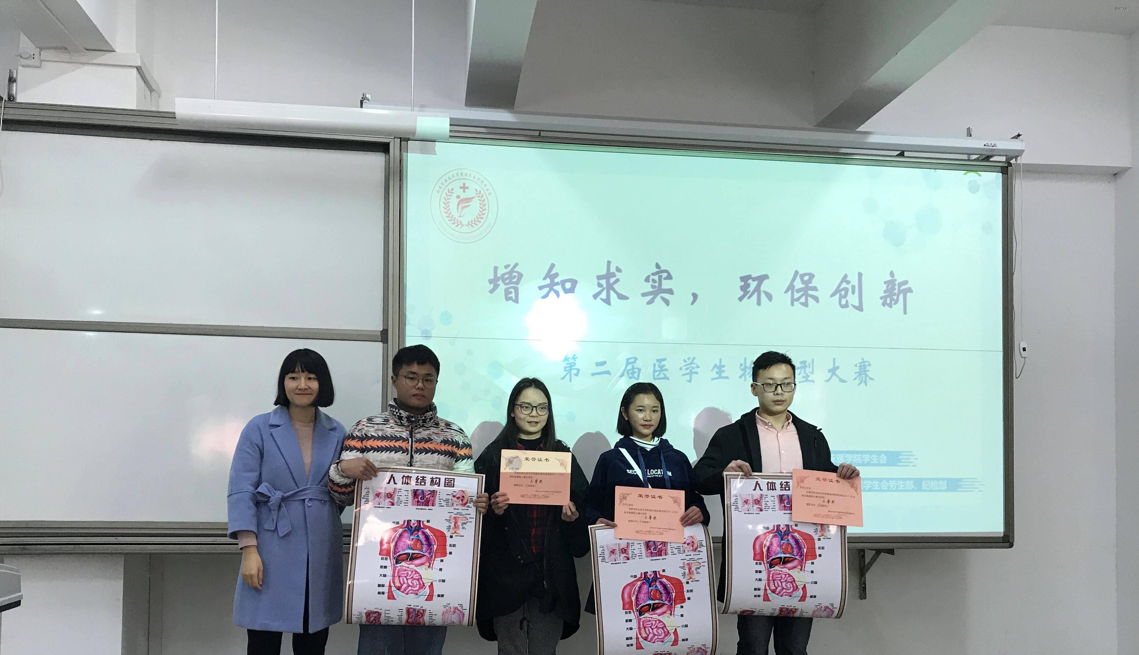 经过层层选拔共10组参赛人员突破重围来到决赛现场。选手们利用绿色环保废旧物品制作的生物模型作品栩栩如生,构思巧妙。比赛中,选手们将医员工物专业知识与模型构建原理等知识体系有机结合,通过ppt解说、图片、视频等方式为大家生动的介绍了各自作品,赢得了现场评委老师的一致赞赏。