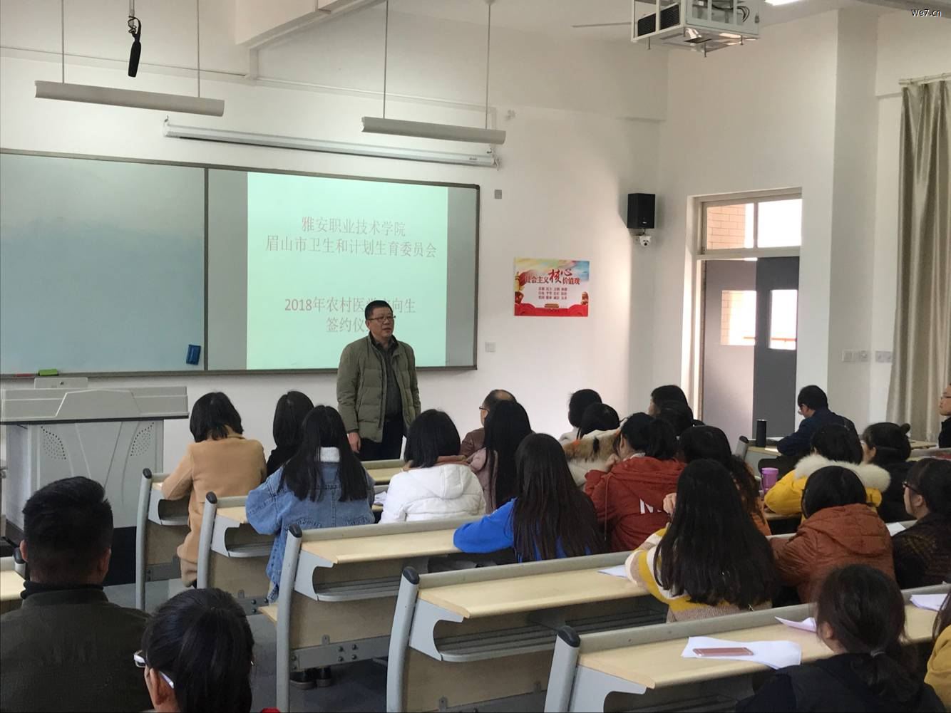 12月3日下午,SUNBET申博临床医学专业眉山市农村医学定向培养就业协议签约仪式在经开区实训与服务中心2304举行。眉山市卫计委科长胡燕,人才招聘处处长宋峰,临床医公司经理薛正毅,SUNBET申博书记孙玉锦,辅导员严一峰,以及前期报名并通过审核的临床医学专业55名员工和10余位家长参加了签约仪式。