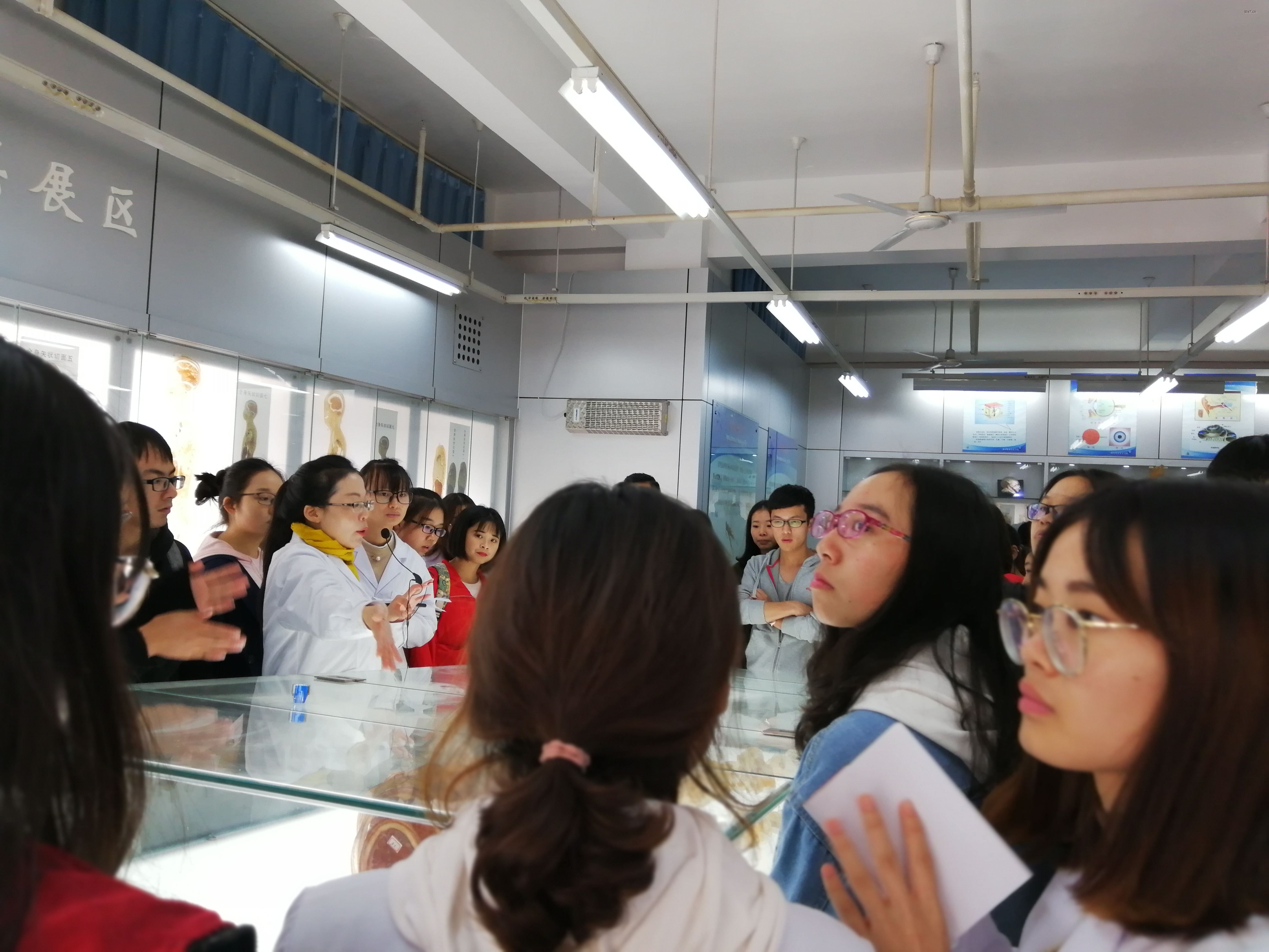 怀着好奇,带着憧憬,同学们踏入了神秘的人体生命科学馆,开始一段追寻生命奥秘之旅。进入展馆的第一件事,就是李老师带领我们面向感恩墙遗体捐赠者鞠躬鞠躬致敬。正是因为他们的无私才让我们能够直观的认识生命,了解人体,掌握医学知识。随后,老师为我们讲解了胚胎标本,从受精卵开始,胚胎发育第一周,第一个月,三个月……一直到第十个月婴儿刚刚出生,不禁感叹生命起源发育的神奇与伟大。再往后我们看到的是一些可怜的畸形婴儿标本,各种各样的畸形儿标本泡在溶液中,让我们不禁感慨拥有一副健康的身体是多么幸福。胚胎标本厅之后是陈列人体各个器官的展厅。为我们展示了由生物塑化技术所保存的人体的心血管系统、神经系统、内脏系统等。这些标本让我们对人体有了更加清晰的认识和了解。再往后是人体冠状切片标本区,数十页薄薄的人体标本,从胸侧到背侧,清晰的展示出人体各个断层的器官,肌肉,组织,人体的复杂让我们的心灵无比震撼。