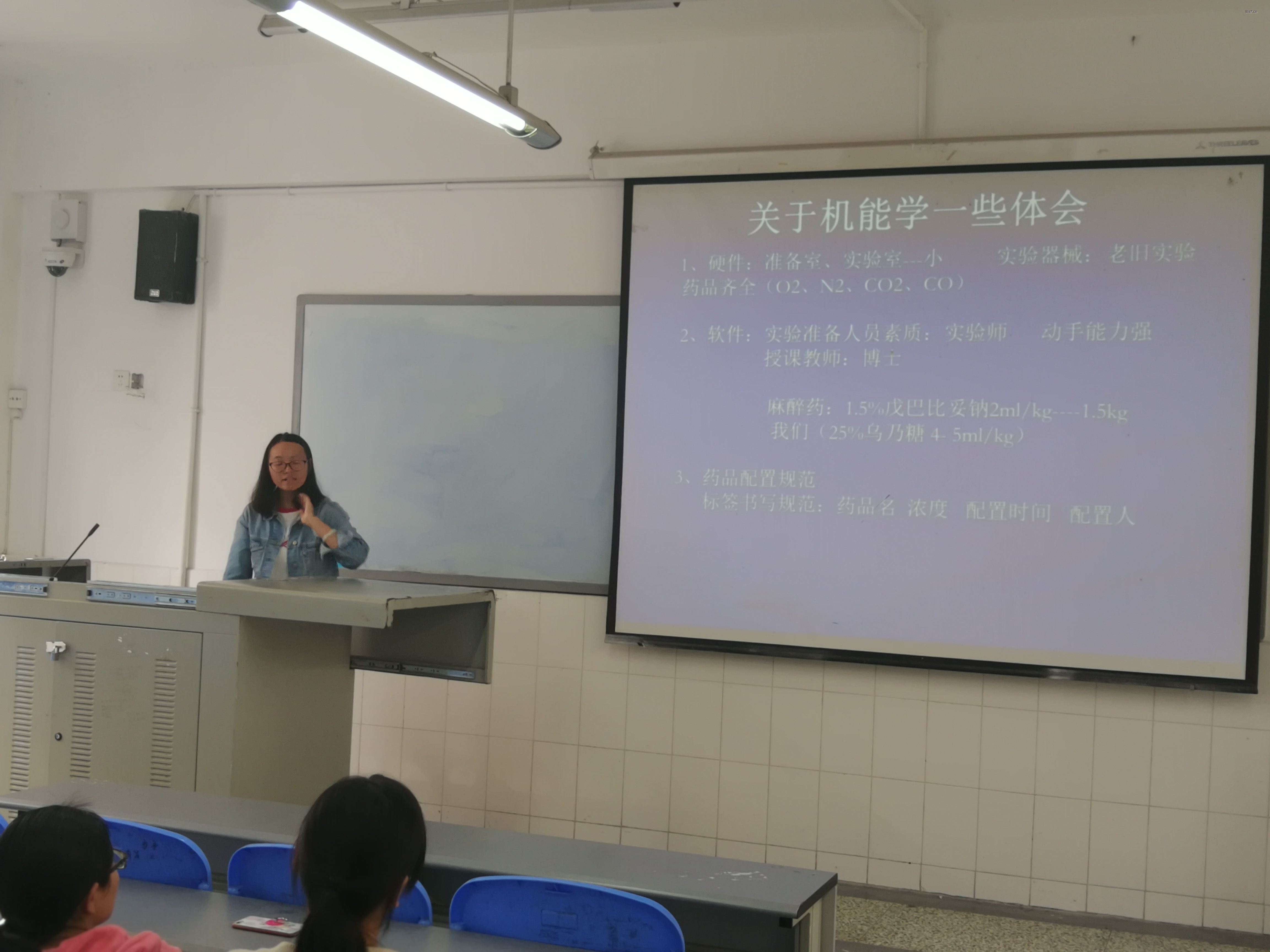 然后,重点向大家讲述了关于生理学和机能实验学跟班学习的一些心得体会。比如翻转课堂在生理学教学中实际应用,华西的教学注重员工课前预习,教师会在课前设置问题让员工思考,课堂上更注重书本知识的深入和小组协作讨论的能力。再比如病例讨论在生理学学习中的重要意义:在华西生理学的教学过程中,病例讨论几乎伴随着每个章节,不仅这提高了员工的学习兴趣,同时也加深员工对章节内容的理解,可谓一举多得。还有就是在机能实验的麻醉过程中实验动物死亡的问题,华西的老师给我们分析了导致动物死亡的诸多原因并提出了行之有效的解决办法。还有很多我们在教学过程中遇到的问题,都得到了华西老师们的指点,这里就不一一赘述了,但总的来说,本次进修学习真的让我们受益匪浅。