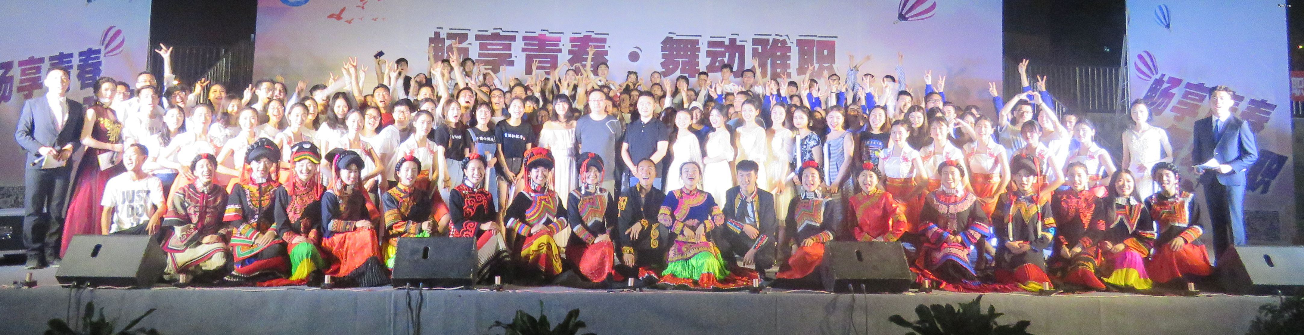 此次晚会共分为 “梦回旧时光”、“展梦想之翼”、“承青春华彩”“无悔青春不说再见”四个篇章,引领毕业生们回望过去四年,展望未来。晚上19点整,一群热情可爱的小姐姐带来的热情似火的爵士舞《Show down fire》,拉开了晚会的序幕。