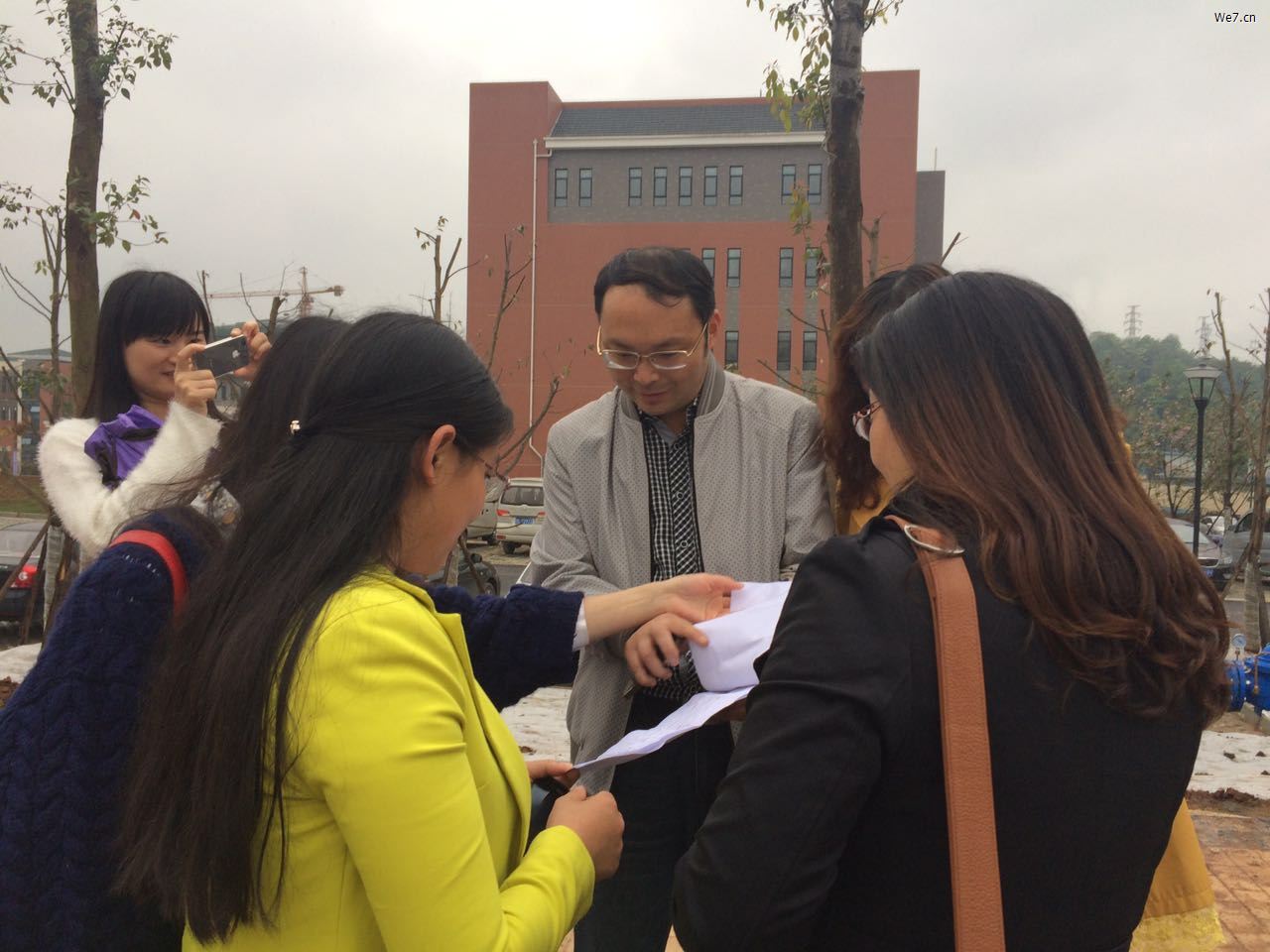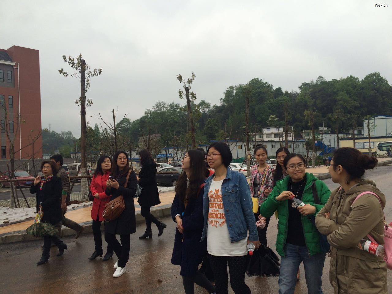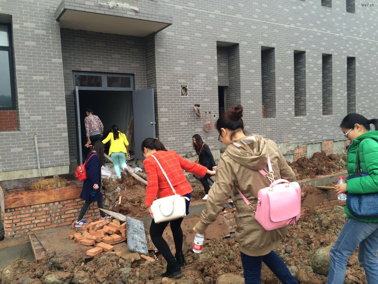 经过大约一小时车程,到达名山校区。老师们冒着淅淅沥沥的春雨,踩着一路的泥泞,到达还在内部施工的实验实训楼。