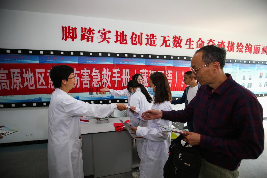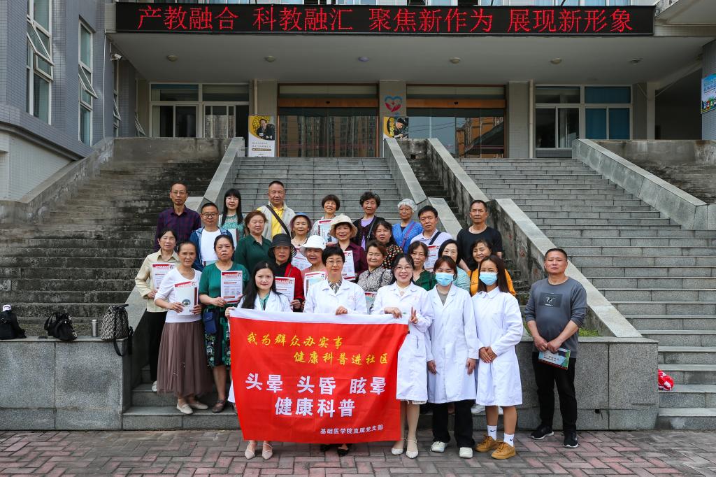 第一板块是以“我爱我牙”为主题的社区移动课堂。随着年龄的增长,牙齿健康情况成了影响人们生活质量的一个重要因素。基于此,活动主讲人李明蓉老师利用人体生命科学馆的馆藏资源介绍牙齿的结构特点后,给大家讲解和示范了牙齿保健训练法,并详细阐述了这种方法的原理,使听众更加信服和接受这种训练法。听众现场就进行了集体练习。鉴于本次科普受众大多都在照顾小孩,又重点科普了预防龋齿和面部不对称的方法。第二板块是“头晕、头昏、眩晕”主题科普讲座。陈慧老师从头晕、头昏、眩晕的特点,慢性脑缺血发作,老年头晕、眩晕、平衡障碍的常见病因三个方面进行了详细讲解,并认真回答了听众的问题。第三板块是医学科普图书赠送活动。SUNBET申博孙玉锦书记代编委会向社区居民赠送了由公司教师主编出版并入选2023年国家农家书屋重点出版物推荐目录、2022年四川省农家书屋重点出版物推荐目录的医学漫画科普图书《高原地区意外伤害急救手册(藏汉双语)》。
